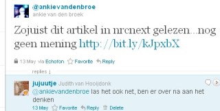 Je was er de afgelopen dagen niet, maar via twitter hadden we toch nog contact. O.a. over het artkel in NRCnext van afgelopen vrijdag: