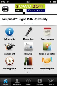 Ik heb de OWD11-app inmiddels via de App Store (zoek op ‘onderwijsdagen’) op mijn iPhone en iPad geïnstalleerd, het is ook via iTunes te downloaden. Gelukkig voor jou is er ook een Android-variant :). Ook te vinden in de Android-market op ‘owd2011’.