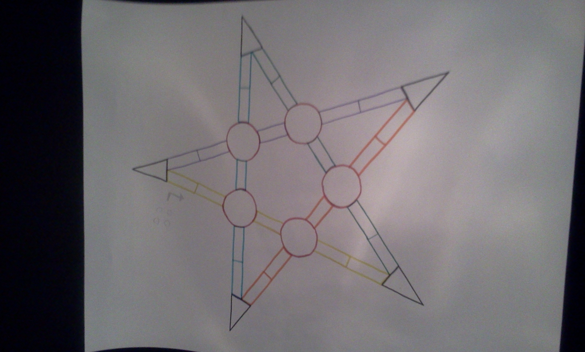 Na de lunch zijn de studenten aan de slag gegaan. Ze hebben nog niet het ultieme bereikt (een spel dat af en inzetbaar is) maar dat zeg ik met de nadruk op nog! Want ze zijn wel al goed bezig. Of het spel Jethro’s Glitterstick of toch ‘gewoon’ 21th Century Step One gaat heten dat weet ik nog niet. Maar de vorm van het bord is wel al gemaakt!
