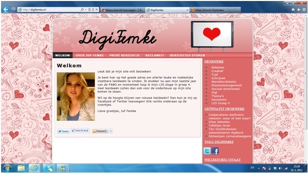 Als je al mag spreken van dat er jongere vesies van onszelf rondlopen (los van je kinderen dan) dan ben ik de jongere versie van Judith pas geleden tegen gekomen. Nee niet bij de IM opleiding of als stagair bij de bibliotheek. Maar een onderwijs mindede dame die ‘gewoon’ alsof het niets is voor haar verjaardag een website vraagt (en krijgt/maakt!) www.digifemke.nl