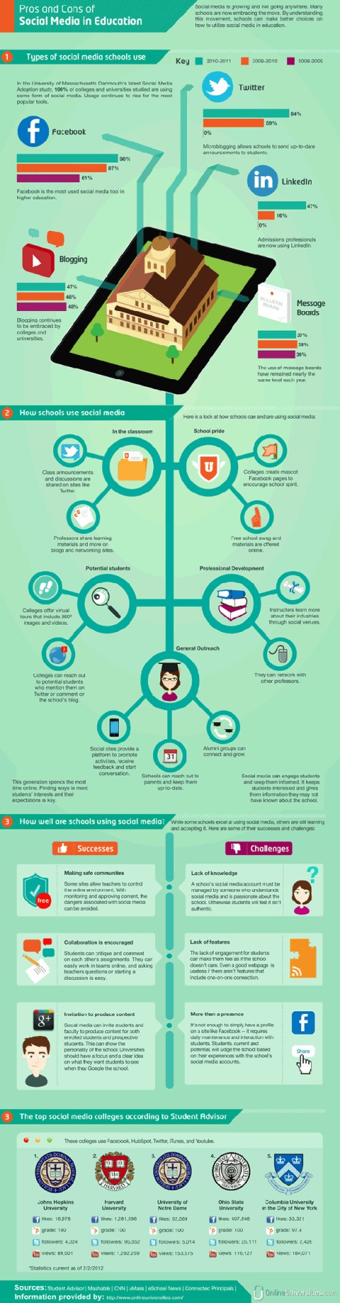 Via @ChielSogeti ben ik een infographic tegengekomen over Social Media in Education. Het is uit een blogpost van een bedrijf dat een Social Learning Management System ‘verkoopt’. Ik ken het systeem niet, maar de infographic is interessant genoeg. Ben alleen benieuwd hoe jij deze Infographic beoordeeld als onze Social Media expert?