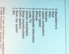 Ons huishouden (als de 3 kinderen thuis zijn ;)) komt wel in de buurt van dit lijstje, alleen hebben wij maar 1 breedbeeldtelevisie!