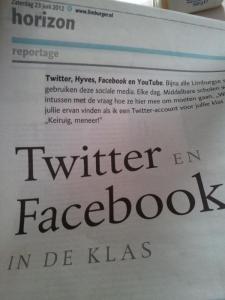 Hè hè, eindelijk eens een positief verhaal in de krant over social media in het onderwijs. Dit keer niet over vervelende filmpjes op You Tube en dat je vooral geen ‘vriendjes’ moet worden met je leerlingen.