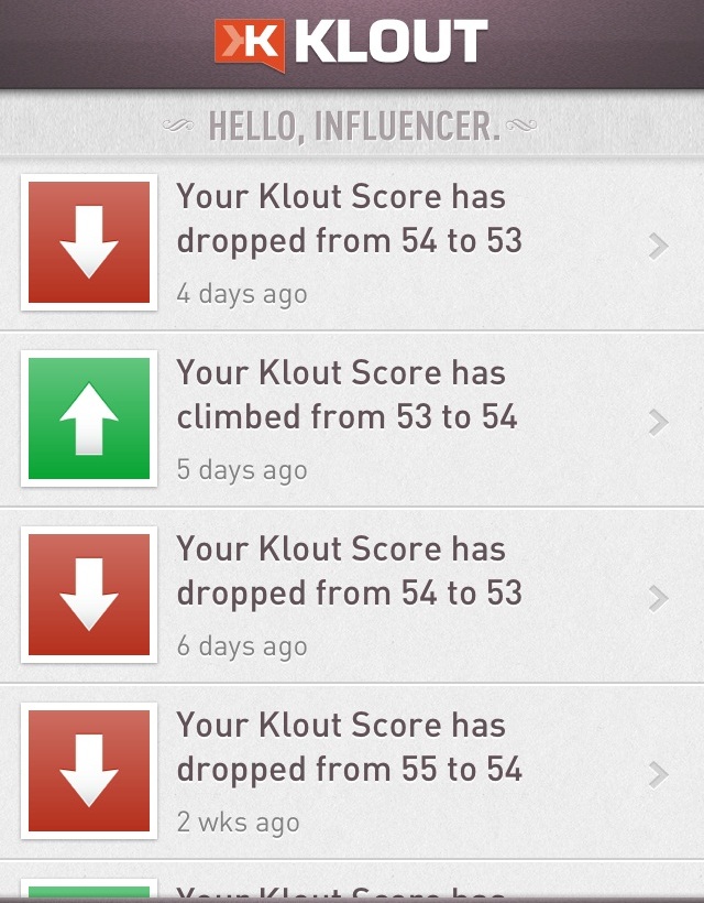 Klout speelt hiermee in op onze ijdelheid, op het feit dat mensen graag over hun bol worden geaaid, aardig gevonden willen worden en schouderklopjes willen ontvangen. Ja, ook ik vind dat toch erg leuk. Maar ik ga niet zo ver dat ik hiervoor mijn online gedrag ga aanpassen 🙂