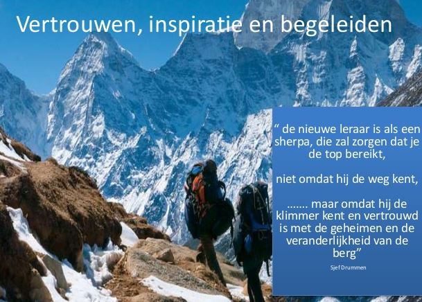 Ook zo’n heerlijke ongenuanceerde uitspraak van Sjef Drummen. Hij pleit voor creativiteit, lef en flexibliteit als competenties voor deze snel veranderende samenleving. Wij hebben allemaal een natuurlijke weerstand tegen veranderingen. We moeten echt leren laveren in de storm. De enige zekerheid is de onzekerheid van morgen. Dat betekent ook voor leerkrachten als zij leerlingen de verantwoordelijkheid geven voor hun leerproces, dat zij niet weten hoe hun onderwijs de volgende dag eruit ziet. De leerling vraagt. De leerkracht is de coach. En toetsen is een schijnzekerheid *grinnik*