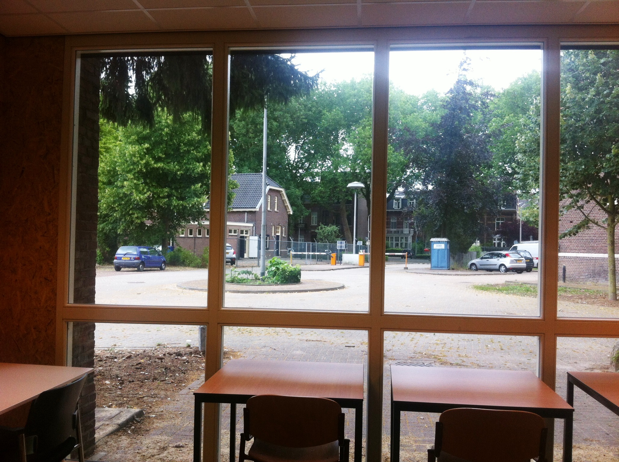Dit gebouw wordt (tot de geplande sloop over 3-4 jaar) gerund door studenten. Yvette wilt samen met de studenten vooral leren wat wel en niet wenselijk is voor de geplande nieuwbouw. Yvette vertelde ook nog van andere leuke concepten die in de planning staan. Zoals een combinatie van sport en studie in de vorm van Treadmill Desk, waar je achter de bureau kunt fietsen of lopen. In de winter zal het in de ruimte buiten de box fris zijn, een mooie win-win-situatie.