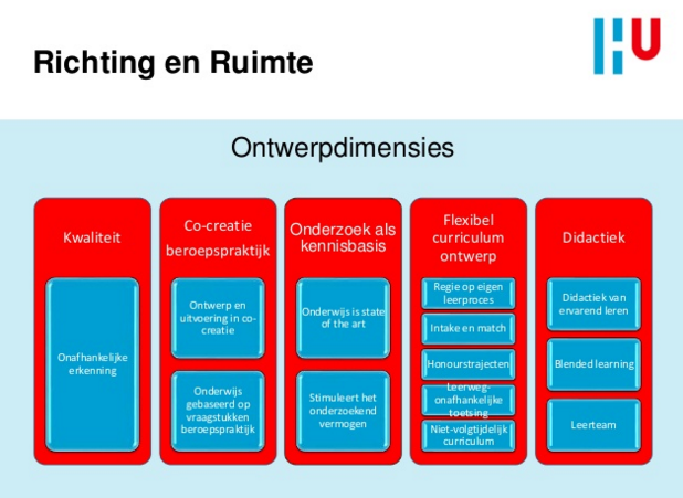 Ook nog even dat slides van de HU gekeken over het regelen van blended learning op instellingsniveau. Het waren plaatjes die ik ook herkende van hun presentatie tijdens Dé Onderwijsdagen. Belangrijk om deze ontwerpdimensies ook mee te nemen.