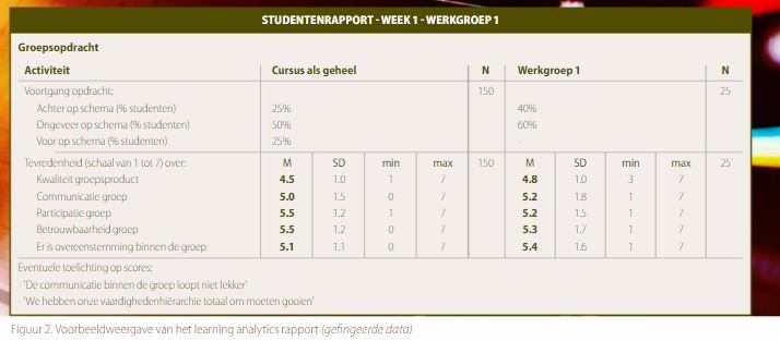 - maak vaste afspraken in het team om de uitkomsten van het learning analytics-rapport te bespreken.