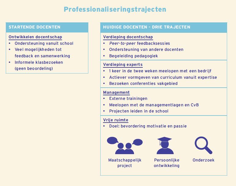 - Help docenten om verder te professionaliseren (10% van de werktijd voor professionalisering)