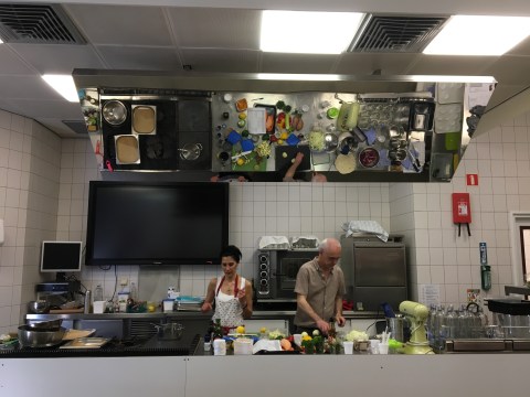 Deze week hadden we (eindelijk!) de kookworkshop. Op de warmste dag van het jaar totnutoe zaten we in de warme instructielokalen van de Hotelschool. We mochten iemand meenemen, en dochterlief vond het leuk om mee te gaan.
