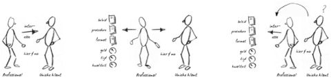 De systeemwereld wordt ervaren als te veel sturend en te veel gericht op standaardisatie. De leidinggevende stuurt op de systeemwereld en maakt het de professional die wel vanuit de bedoeling wilt werken lastig. We houden elkaar gevangen in een web van wantrouwen bestaande uit veelheid aan regels en controle mechanismes (en als er dan eens iets misgaat dan duikt de pers er op en moet er een verantwoordelijke aan de schandpaal). Op alle organisatieniveaus hoor ik dat er ruimte genoeg is, maar die niet gepakt wordt. Ik hoorde het een bestuurslid NVAO zeggen over de hoger onderwijsinstellingen, ik hoorde het een onderwijsbestuurder zeggen over docenten. Hoe komt het dat we deze professionele ruimte dan toch niet zo ervaren?
