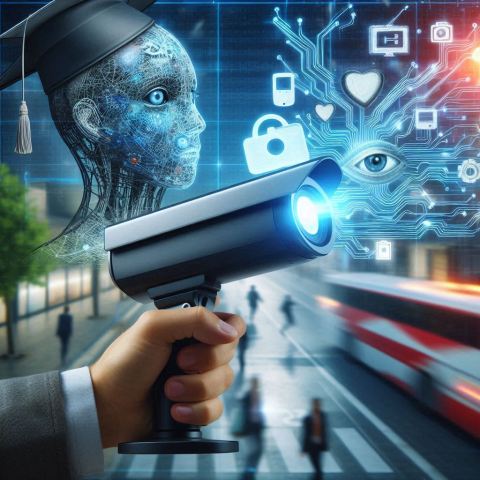 Big brother is watching you. Bewakingscamera’s en AI in het onderwijs. Gegenereerd door DallE3 via Copilot