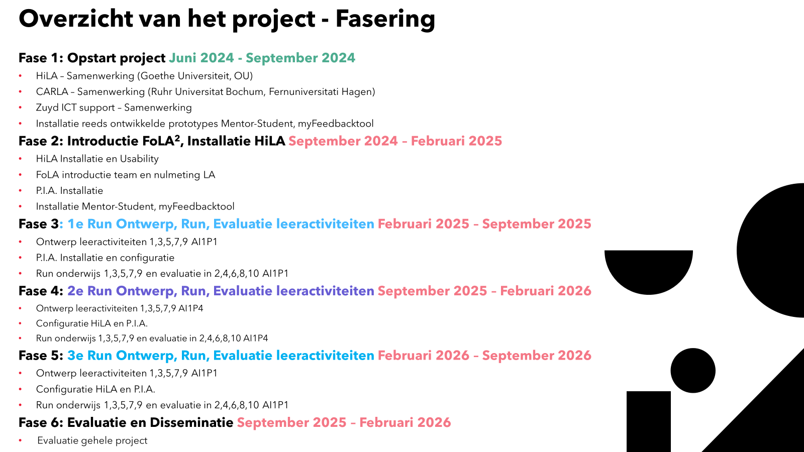 Er staan in dit overzicht veel plaatjes. Sommige zul je herkennen sommige ook niet. Als we kijken naar de fases die er zijn in dit project dan wordt het wellicht iets duidelijker, maar ik zal in de komende tijd over de losse onderdelen gaan bloggen, zodat er beetje bij beetje meer inzicht komt.