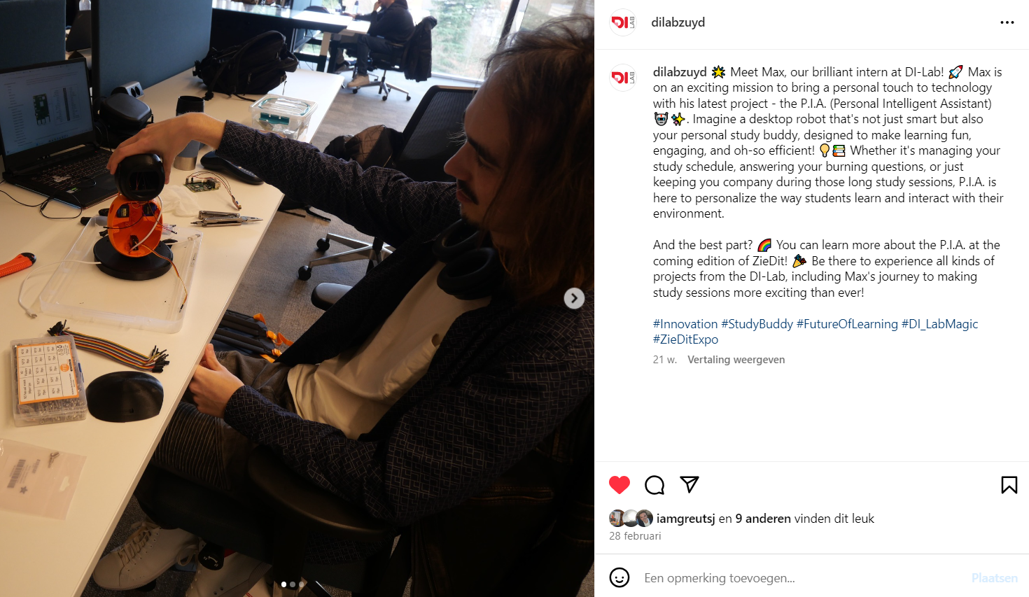 - P.I.A. – Personal Intelligent Assistent. Een project waar we in verschillende vormen in het verleden ook al aan gewerkt hebben. De laatste keer in de vorm van een Robot: