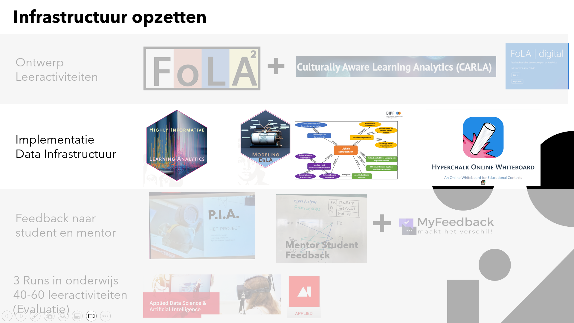 Eerder in mijn PhD-traject heb ik mogen constateren dat studenten persoonlijke informatie willen over hun leerproces en feedback tijdens de module, niet alleen achteraf. Ze hebben behoefte aan gepersonaliseerd onderwijs op basis van hun motivatie. Daarnaast kan ik constateren dat het toepassen van Learning Analytics aan het opkomen is, en er op verschillende plekken in de praktijk mee geëxperimenteerd wordt, maar dat het blijft bij goede voorbeelden en dat beperkt de cirkel van het inrichtingen en gebruiken van learning analytics rond wordt gemaakt. Je weet dat ik geprobeerd heb dat te doen samen met Roald Janssen en tijdens het online event LAP24 hebben we daar recentelijk een presentatie over gegeven: