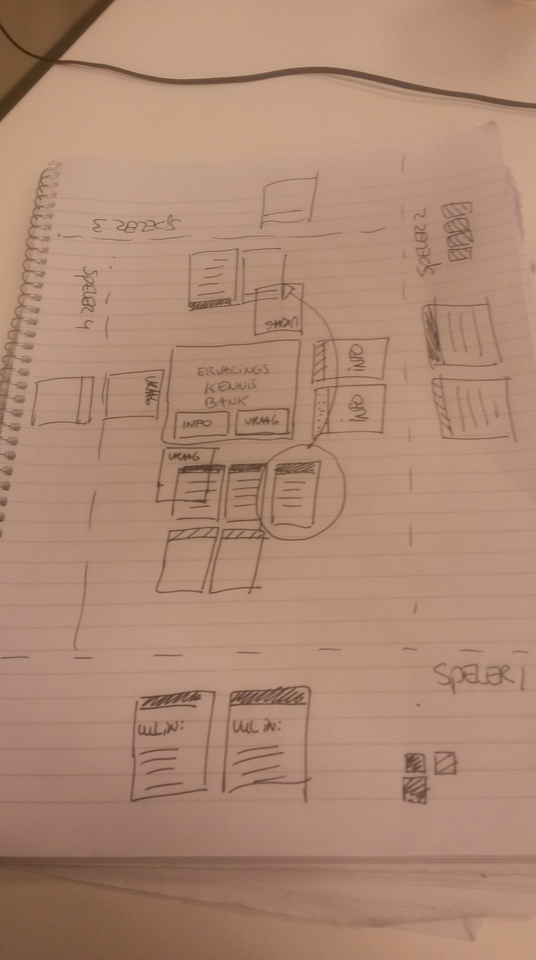 Niels gaat nu een eerste versie knippen, plakken, knutselen op basis van de opgestelde requirements geĂŻnspireerd op Rummikub, kwartet en de 1000 blank cards game met een centrale kennisdata-bank in het midden.