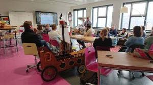 Gisteren waren we bij Avans in Den Bosch. Daar is ruim een jaar geleden Avans Innovative Studio opgezet. Jan Snijders had enkele jaren geleden verteld over zijn droom over dit nieuwe onderwijsconcept. Zo mooi om dat nu echt te zien. Het is een combinatie van de pop-up school (vraagstukken uit het werkveld / design thinking) en fablabs. Het is een beetje scrummen en in 2 weken een protype maken, het is vooral multidisciplinair samenwerken. Er wordt gewerkt aan competenties: realisatiekracht – creativiteit – probleemoplossend vermogen – innovatiekracht – reflectieve professional – interdisciplinair samenwerken. Iedere student heeft een personal coach, er wordt ontwikkelingsgericht getoetst (ipsatief), veel peerfeedback. Studenten kunnen in hun vrije studieruimte voor 10 weken inschrijven. De studio is erg succesvol, studenten beoordelen deze manier van leren heel positief. Over enige tijd wordt ook zo’n ruimte ingericht in Avans Breda. De studenten worden geacht van 9 tot 3 in de ruimte aanwezig te zijn. En dat doen ze ook. Alles in de ruimte staat op wieltjes zodat deze learning space heel flexibel is en snel omgebouwd kan worden.