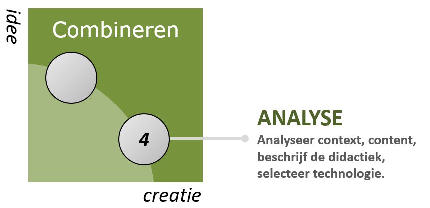 Het kernbegrip van deze stap is het onderwijsontwerp. Het ruwe ontwerp heeft aan het einde van deze stap vorm gekregen. Dit raamwerk zal in de volgende fase van het model worden uitgewerkt in concrete blended leeractiviteiten met gebruik van leertechnologieën.