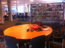 We hebben onze tijd goed besteed al stond er (nog) geen lange rij aan onze tafel 😉 . Na ons overleg met de werkgroep informatievaardigheden zijn we na de pauze in de personeelskamer gaan zitten (te warm) om uiteindelijk in de hal (heerlijk muziekje) neer te strijken en daar nog wel wat collega’s getroffen. Het is nog even zoeken naar een geschikte plek, dat zal op elke locatie anders zijn.
