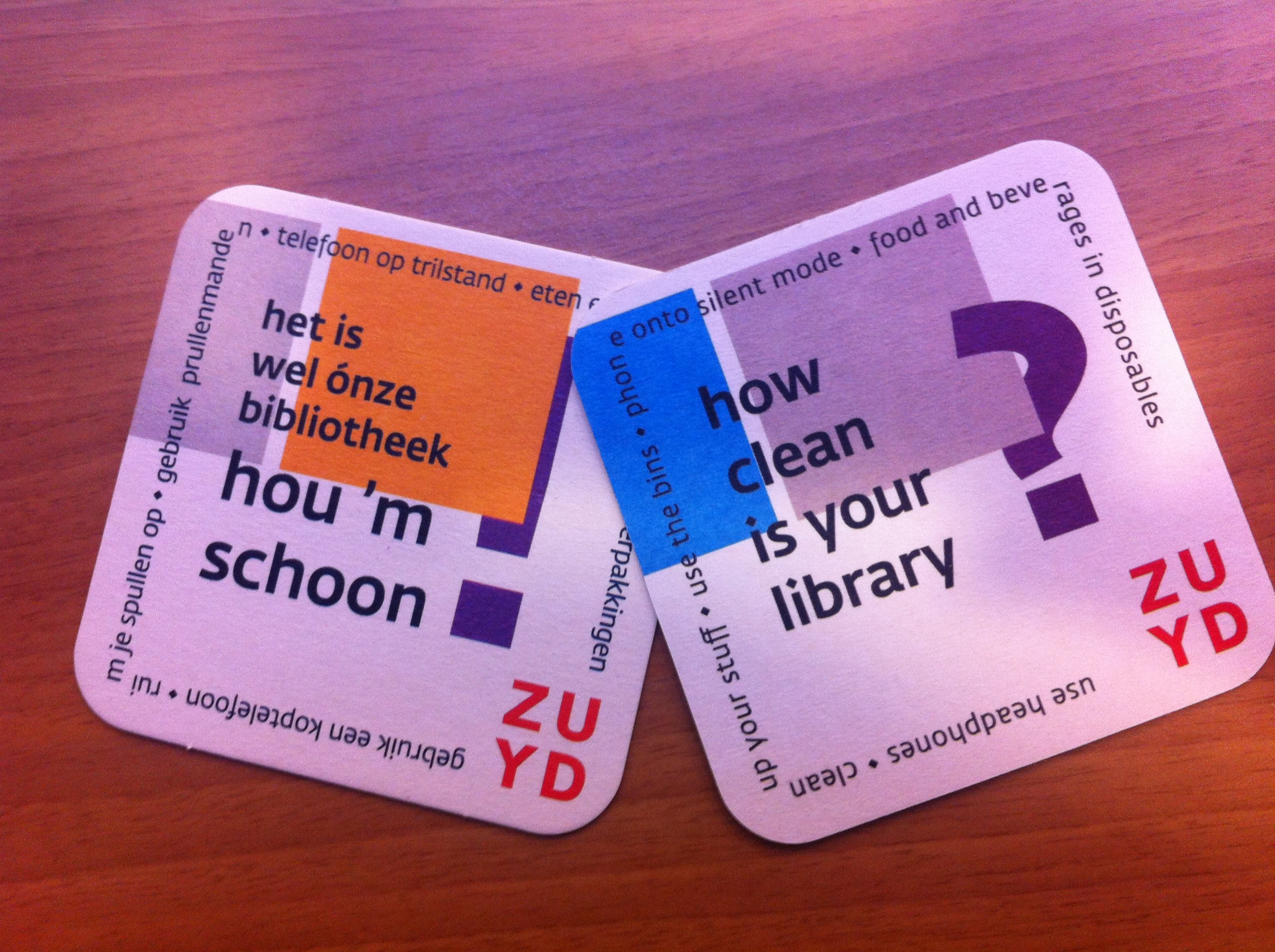 Maandag zat ik ook al in de bibliotheek, op mijn oude werkplek achter de balie van de Hotelschool, een paar uurtjes collega’s-in-nood helpen. Ik keek uit op de nieuwe posters van Zuyd Bibliotheek die speciaal ontworpen zijn om de aandacht te vestigen op gedrag en gastvrijheid in Zuyd Bibliotheek.