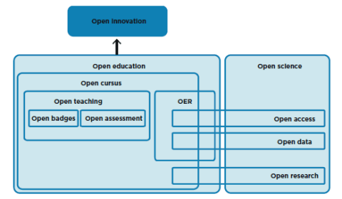 De potentie van open onderwijs is groot, zegt Robert. Dat vind ik ook. De eerste drie bijdragen gaan vooral over online onderwijs, met name MOOCs. Over de efficiëntie en de kwaliteit ervan. Dat het onpersoonlijk is/kan zijn en over tussenoplossingen als kleine online cursussen, of vormen van blended onderwijs. Zoals Robert Schuwer in zijn bijdrage aangeeft: “Open onderwijs heeft echter veel meer verschijningsvormen”. Onderstaand figuur uit het SURF Trendrapport Open en Ondline Onderwijs 2015 (p. 56) geeft een samenhangend geheel van de verschillende vormen van openheid.
