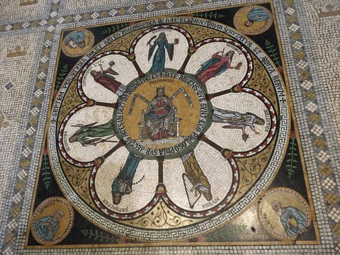 Onze gids vond dat deze mozaïek de bron van ons onderwijs verbeelde of dat zou moeten doen. Ik ben het dat met hem eens.