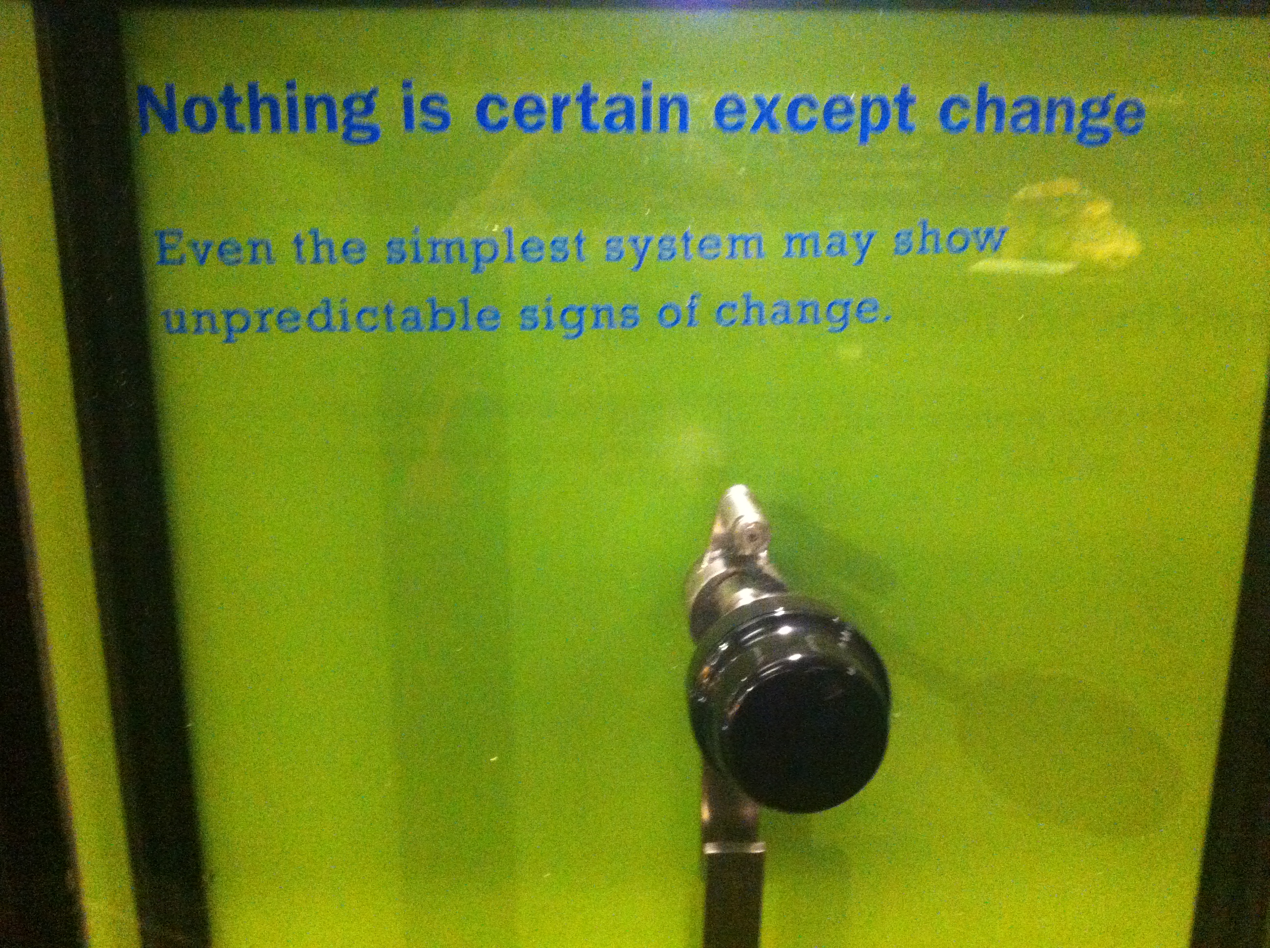 - “Nothing is certain except change”, dat las ik dit weekend in het Natural History Museum. Zo is het! We zullen mee moeten veranderen in deze dynamische samenleving. In een beleidsnotitie begin jaren 90 schreef ik al